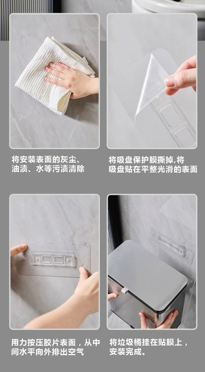 【آویزان شدن بدون سوراخ】 سطل زباله دیواری را میتوان با قلاب یا نوار چسب قابل جدا شدن به درب کابینت آشپزخانه یا دیوار آویزان کرد، که برای نگهداری زبالههای مواد غذایی مناسب است و به طور موثر در فضا صرفهجویی میکند. ریل داخلی قابل شستشو: به لطف بشکه داخلی قابل جدا شدن PP، تخلیه و تمیز کردن آن آسان است، ظرف پلاستیکی را میتوان در ماشین ظرفشویی تمیز کرد. درب نیمه اتوماتیک: این محصول اولین کاربرد ساختار پوشش کشویی در سطل زباله خانگی است.