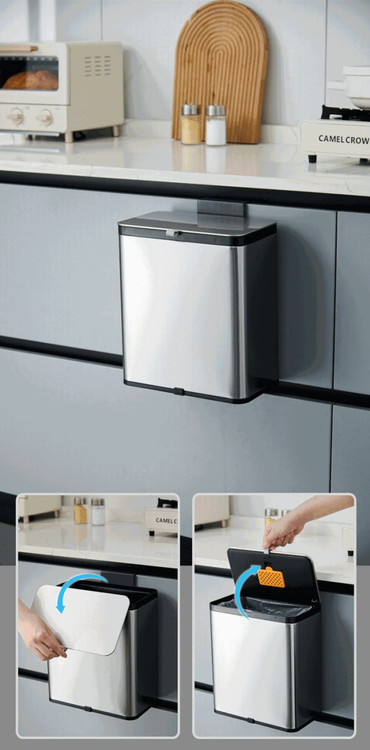 این سطل بهراحتی روی درب کابینت یا دیوار نصب میشود و بدون اشغال فضای اضافی، دسترسی سریع و آسان به آن را برای شما فراهم میکند. درب محکم آن از انتشار بو جلوگیری کرده و طراحی کشویی/بالا بازشو باعث راحتی در استفاده میشود