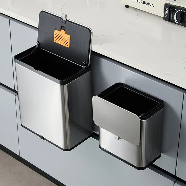 این سطل بهراحتی روی درب کابینت یا دیوار نصب میشود و بدون اشغال فضای اضافی، دسترسی سریع و آسان به آن را برای شما فراهم میکند. درب محکم آن از انتشار بو جلوگیری کرده و طراحی کشویی/بالا بازشو باعث راحتی در استفاده میشود