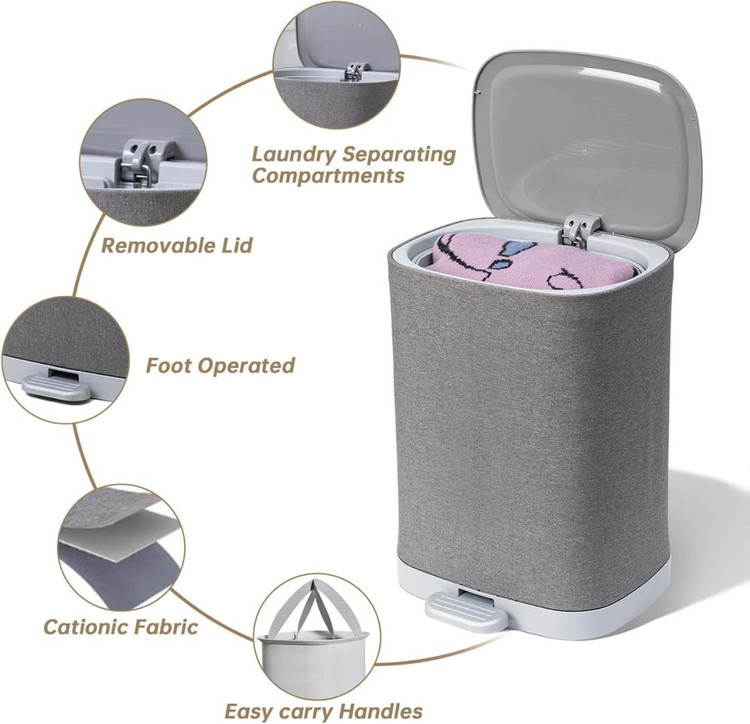 این سبد لباس چرک با طراحی مدرن و مینیمال، گزینهای عالی برای فضاهای کوچک مانند سرویس بهداشتی، اتاق خواب یا لباسشویی است. مجهز به درب پدالی، به شما این امکان را میدهد که بدون نیاز به تماس دست، درب سبد را باز کنید؛ کاملاً بهداشتی و راحت!