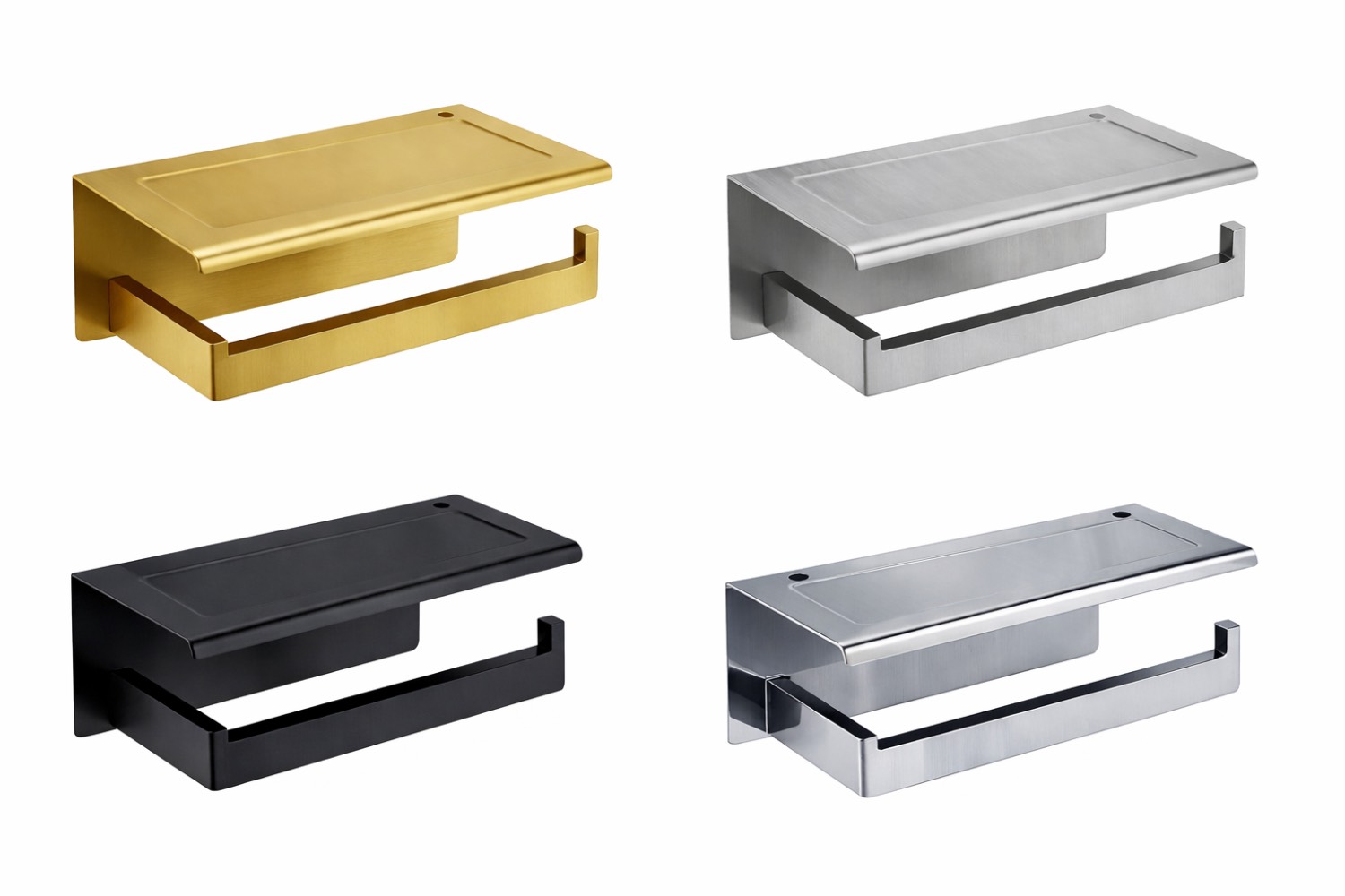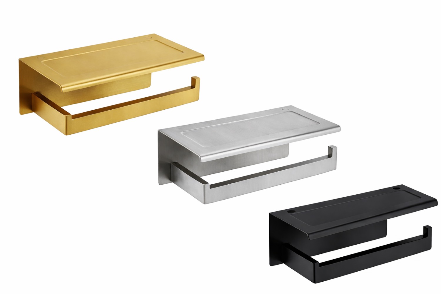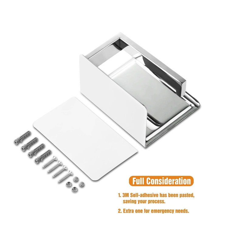 جادستمال کاغذی رول کوتاه صفحه دار در دو حالت چسبی و پیچ رول پلاک به دیوار قابل نصب است .داخل جعبه چسب باکیفیت برند 3M و پیچ رول پلاک گذاشته شده .صفحه فرو رفته می تواند تلفن های همراه، دستمال مرطوب یا سایر اقلام کوچک را در خود جای دهد، در حالی که از لیز خوردن اشیا از قفسه جلوگیری می کند که راحت و کاربردی است. طراحی شیار مخصوص، برداشتن وسایل را برای شما آسانتر میکند. این جا دستمال از جنس استیل 304 و ضد زنگ زدگی میباشد. طراحی گوشه صاف : سطح صاف و طراحی گوشه های گرد از ایمنی شما و خانواده تان محافظت می کند و تجربه بهتری را برای شما فراهم می کند. طراحی اهرم دم کمی کج شده : طراحی کمی کج شده اهرم دم نگهدارنده رول می تواند کاغذ رول را محکم ثابت کند و از لیز خوردن کاغذ رول جلوگیری کند.